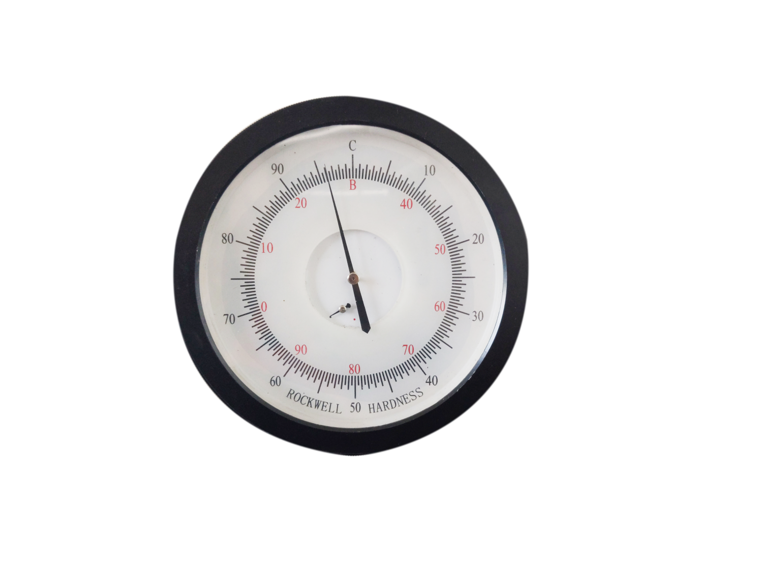 7. Lecturas correspondientes en el indicador. Al probar con diamante reclutamiento, lea las figuras negras fuera del círculo del panel mientras se prueba con bola de acero reclutamiento Lea las figuras rojas dentro del círculo del panel.