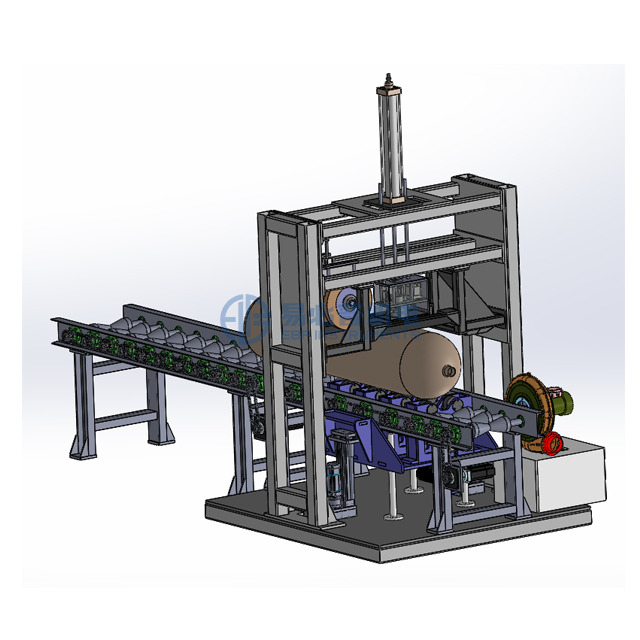 La línea del transportador de rodillos consiste principalmente en un marco transportador, un motor, un rodillo de doble hilera en forma de V y una cadena de accionamiento. El motor impulsa los rodillos a girar, transmitiendo cilindros de gas. Se instalan múltiples interruptores de detección fotoeléctrica en la línea del transportador para detectar cilindros de gas de diferentes tamaños, asegurando que cada cilindro se detenga con precisión en la estación de medición.