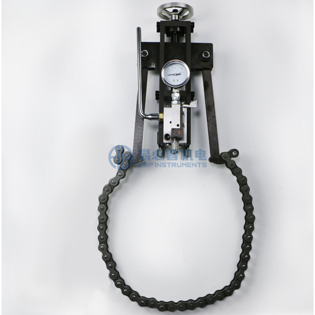 Instale el cabezal de prueba en el adaptador de la cadena, cuando se pruebe, use la cadena para fijar el probador en la superficie de la pieza de trabajo. Y luego maneje la palanca de presión para aplicar la fuerza de prueba. El cabezal de prueba es un pequeño sistema hidráulico en el que se usa una válvula de liberación para controlar la fuerza de prueba. Cuando la fuerza de prueba aumenta 3000 kgf, la válvula de liberación se abrirá y la presión caerá, y debe aplicar la fuerza de prueba repetidamente 3-4 veces para que la aguja del manómetro apunte a 3000 kgf durante 3-4 veces. Por lo tanto, es equivalente a la condición de prueba del método de prueba de dureza Brinell para mantener la fuerza de prueba de 3000 kgf con una bola de 10 mm durante 10-15 segundos, lo que cumple con ASTM E110.